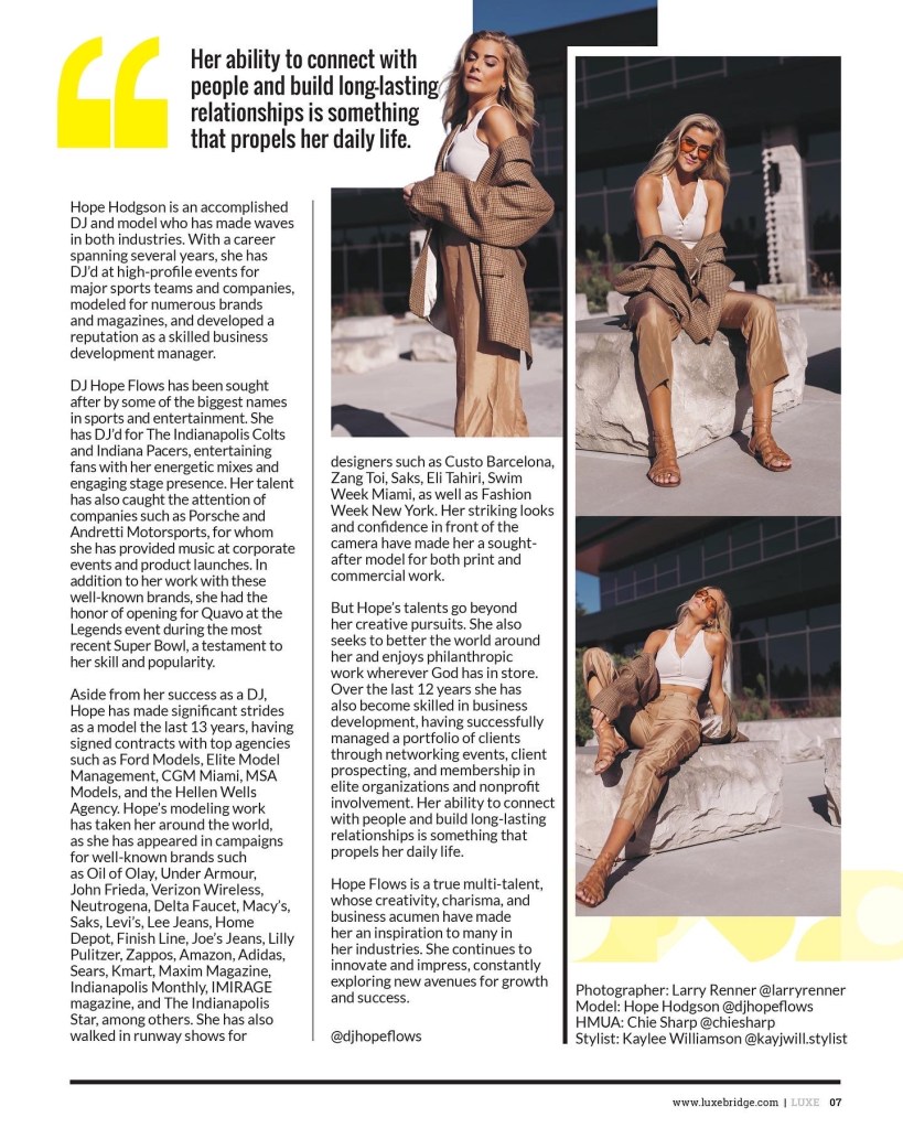 Hope Hodgson, Fashion Model & DJ